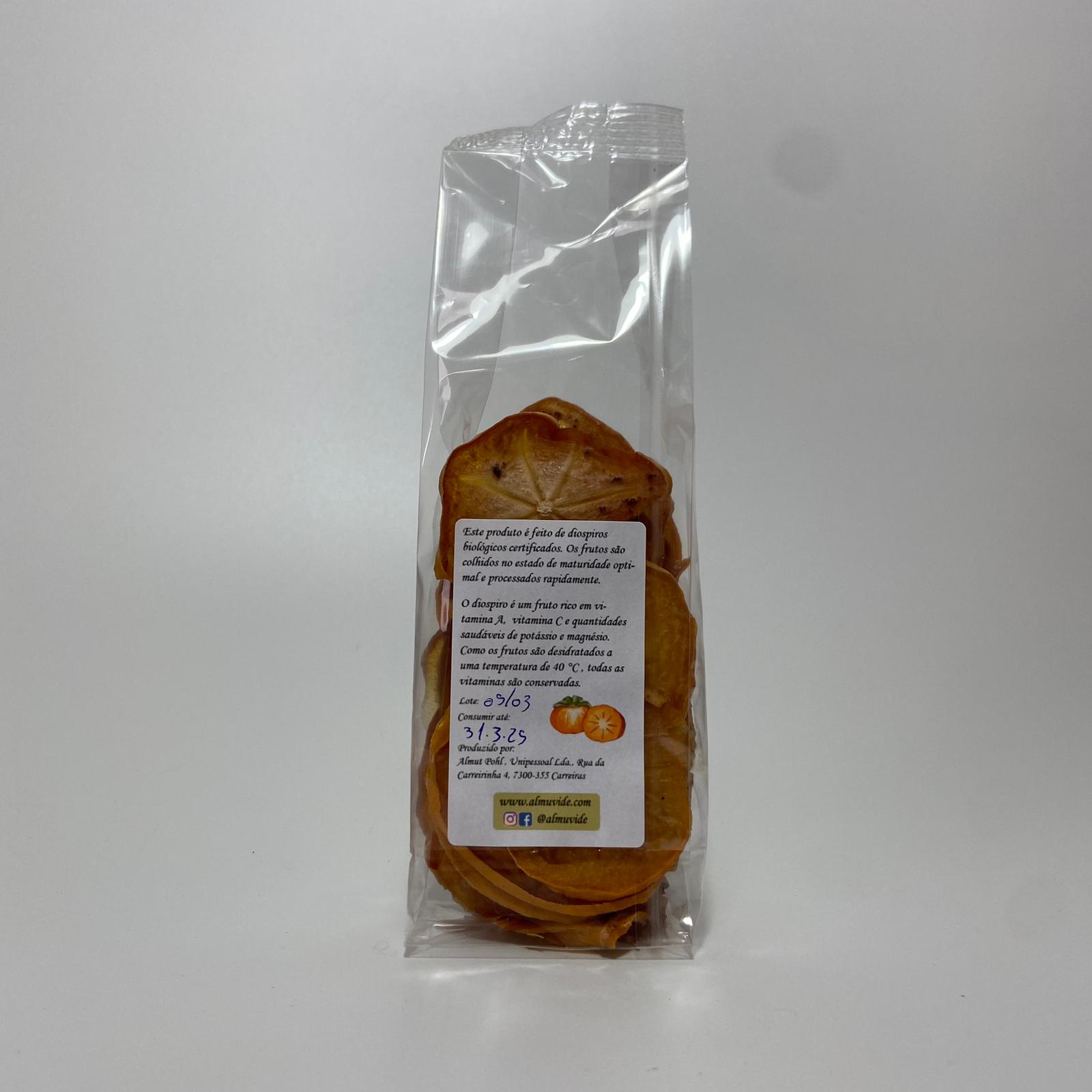 Chips de dióspiro (kaki), delicadamente macios e ligeiramente doces, feitos com dióspiros biológicos, cultivados nas nossas próprias terras no centro de Portugal. Os frutos são colhidos na maturidade ideal e processados rapidamente.
